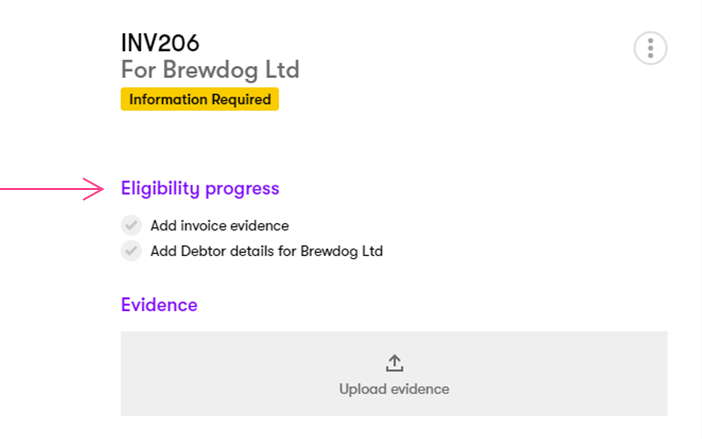 Step 8: With an eligible debtor, you can now just upload the invoice evidence as per Scenario one.