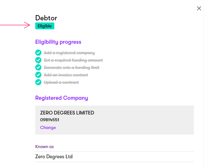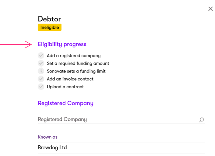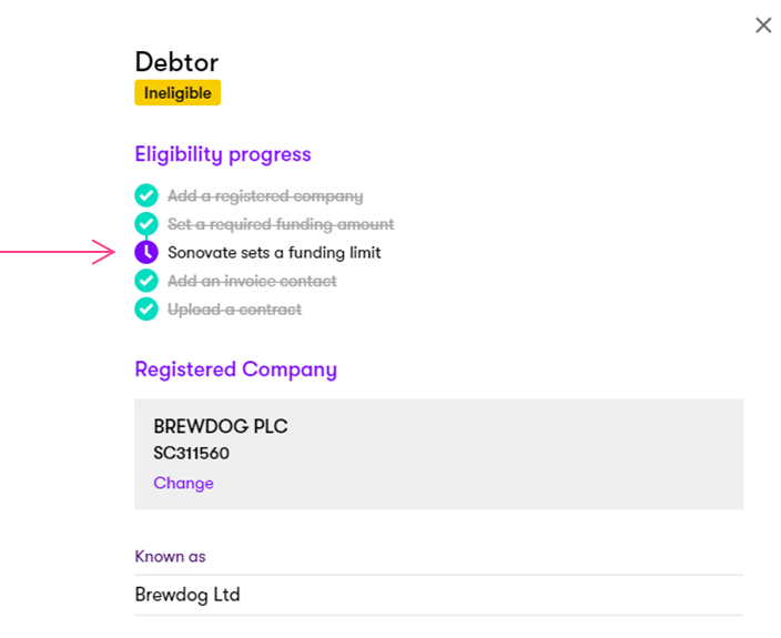 Step 7: Once Sonovate has set a funding limit, the debtor becomes eligible.