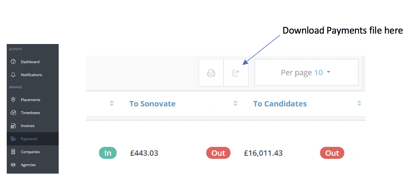Sonovate will create the adjusted VAT invoice and advise of the figure owed to the candidate. It will not show on the payments file even at a later date as the payment has already been included in margin as shown above.